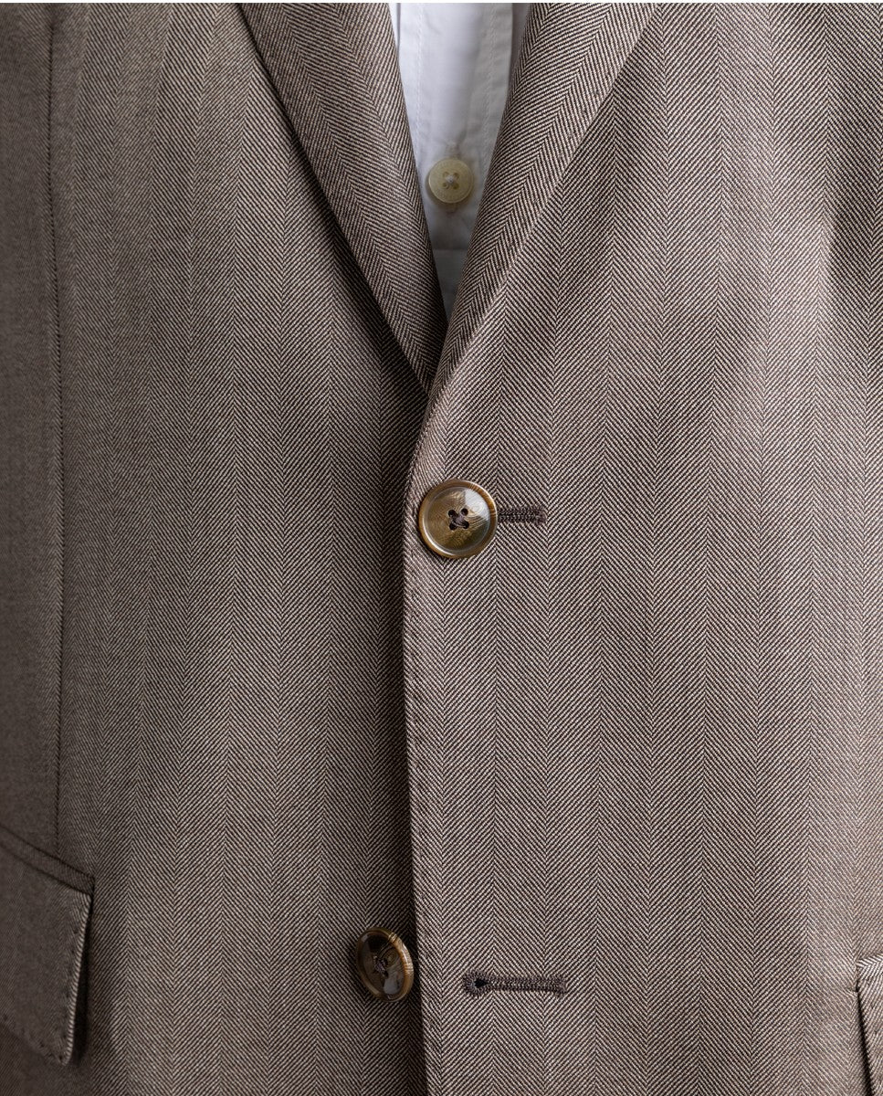 Ref. 1851100. Para quem valoriza estilo, qualidade e intemporalidade. O casaco perfeito para o cavalheiro sofisticado. Fit - Regular Composição - Lã Virgem Padrão - Espinhado Cor - Castanho Botões - 2  aberturas
