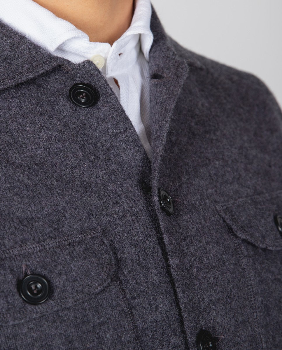 Casaco de Malha 100% Lã em Cinzento Escuro