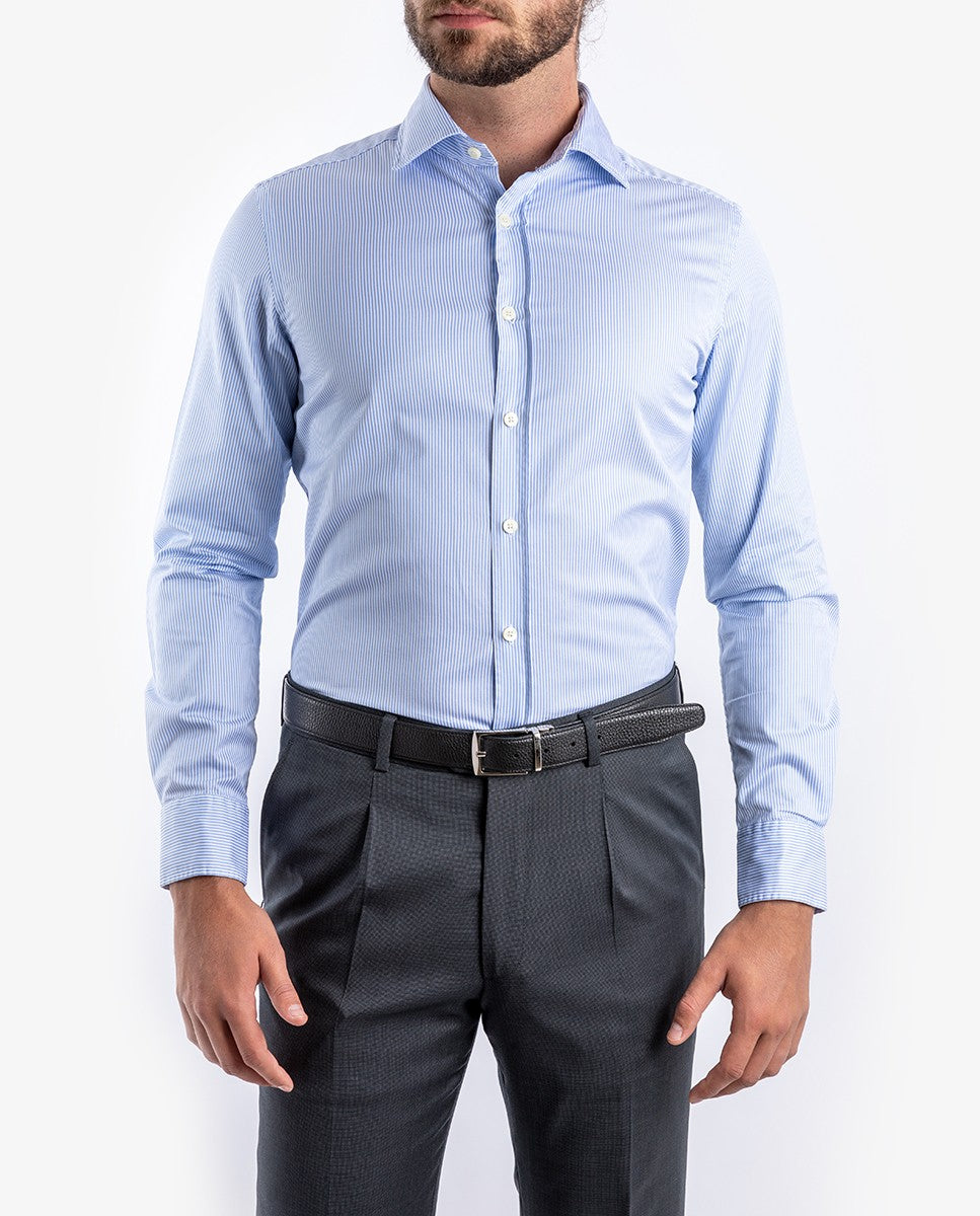 Ref. 1313253. Uma versão casual e confortável de uma peça essencial. Fit - Soft Slim Composição - Algodão Padrão - Riscas Cor - Azul Claro