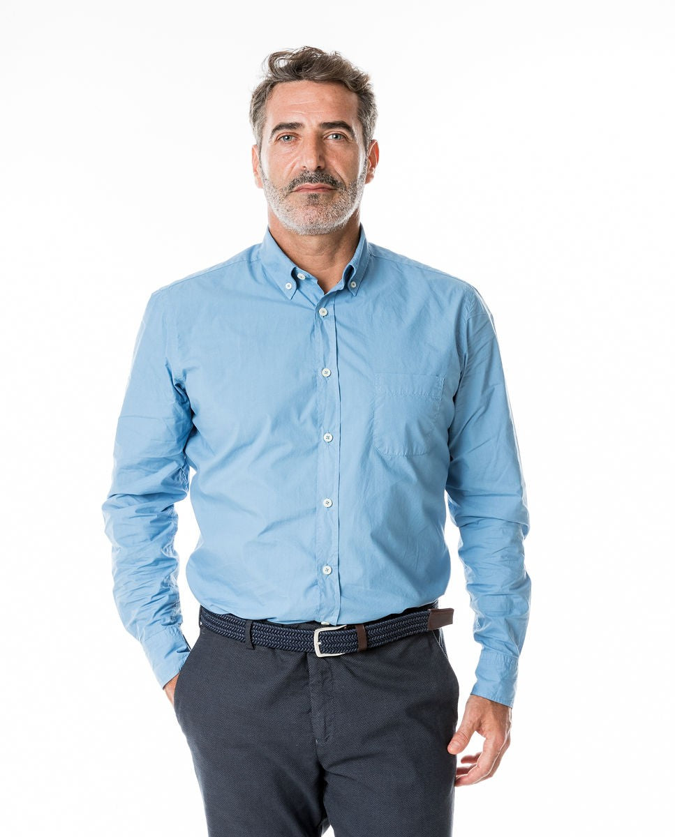 Camisa Casual 100% Algodão em Azul Petróleo