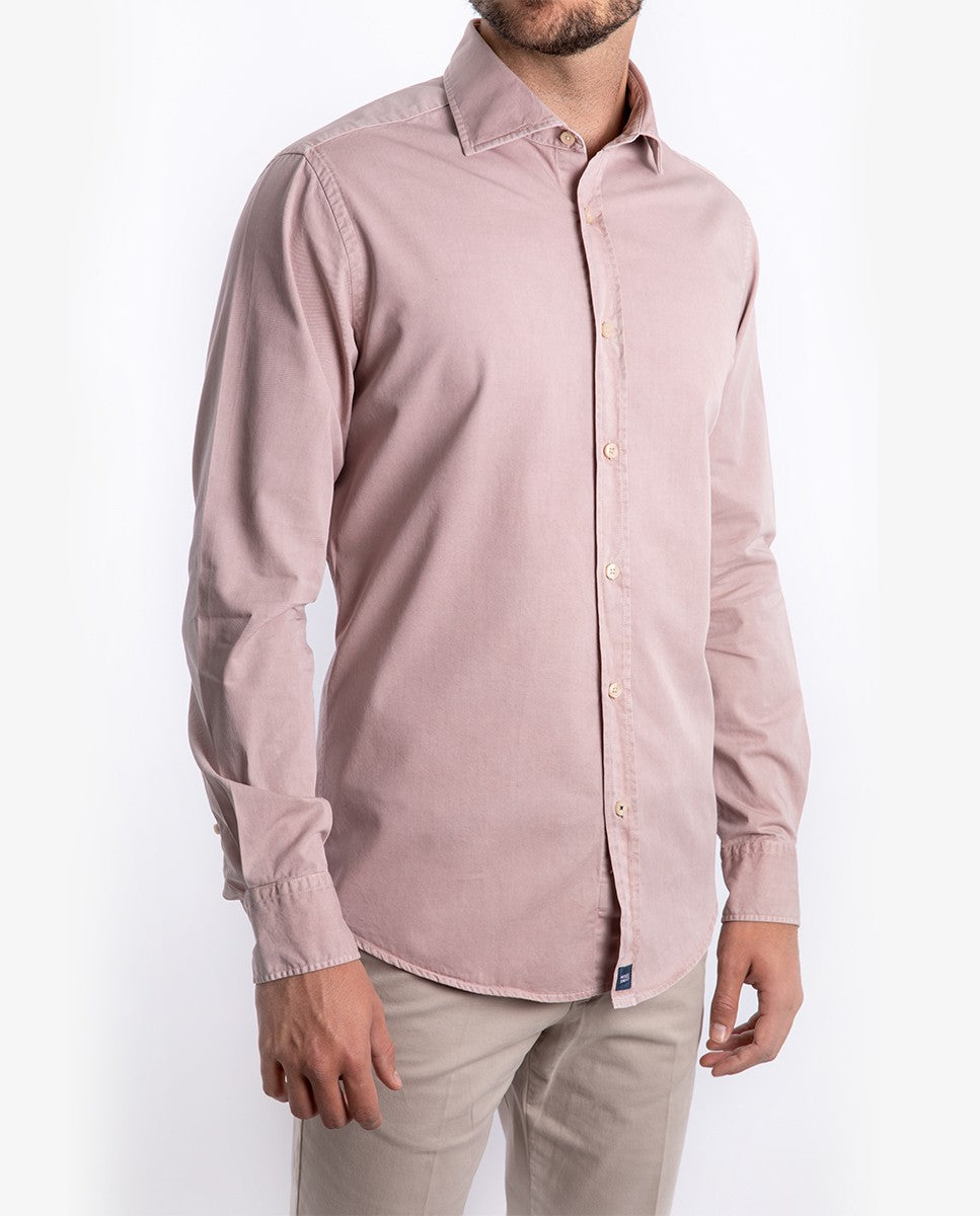 Camisa Casual 100% Algodão em Cor-de-rosa Claro