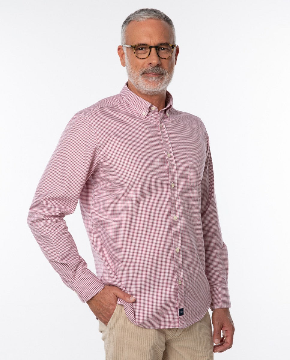 Ref. 1322009. Uma versão casual e confortável de uma peça essencial. Fit - Soft Slim Composição - Algodão Padrão - Grelha Cor - Encarnado Escuro