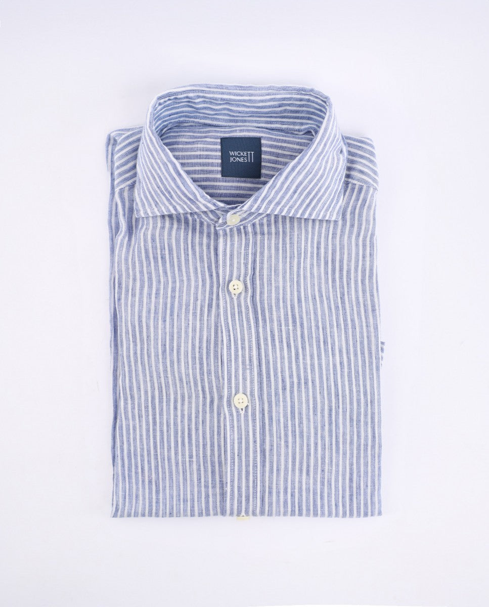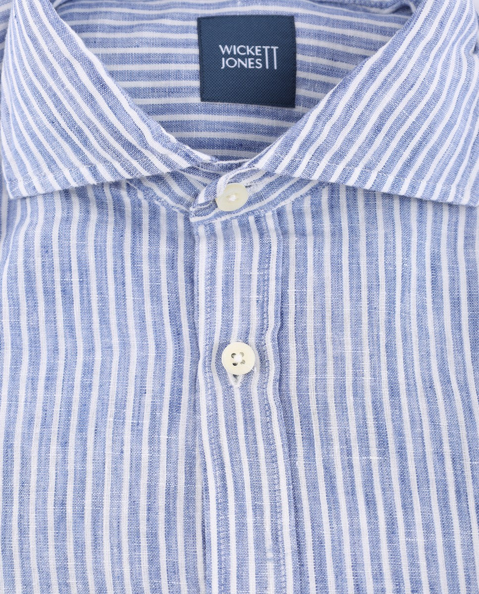 Ref. 1313109. Uma versão casual e confortável de uma peça essencial. Fit - Soft Slim Composição - Linho Padrão - Riscas Cor - Azul