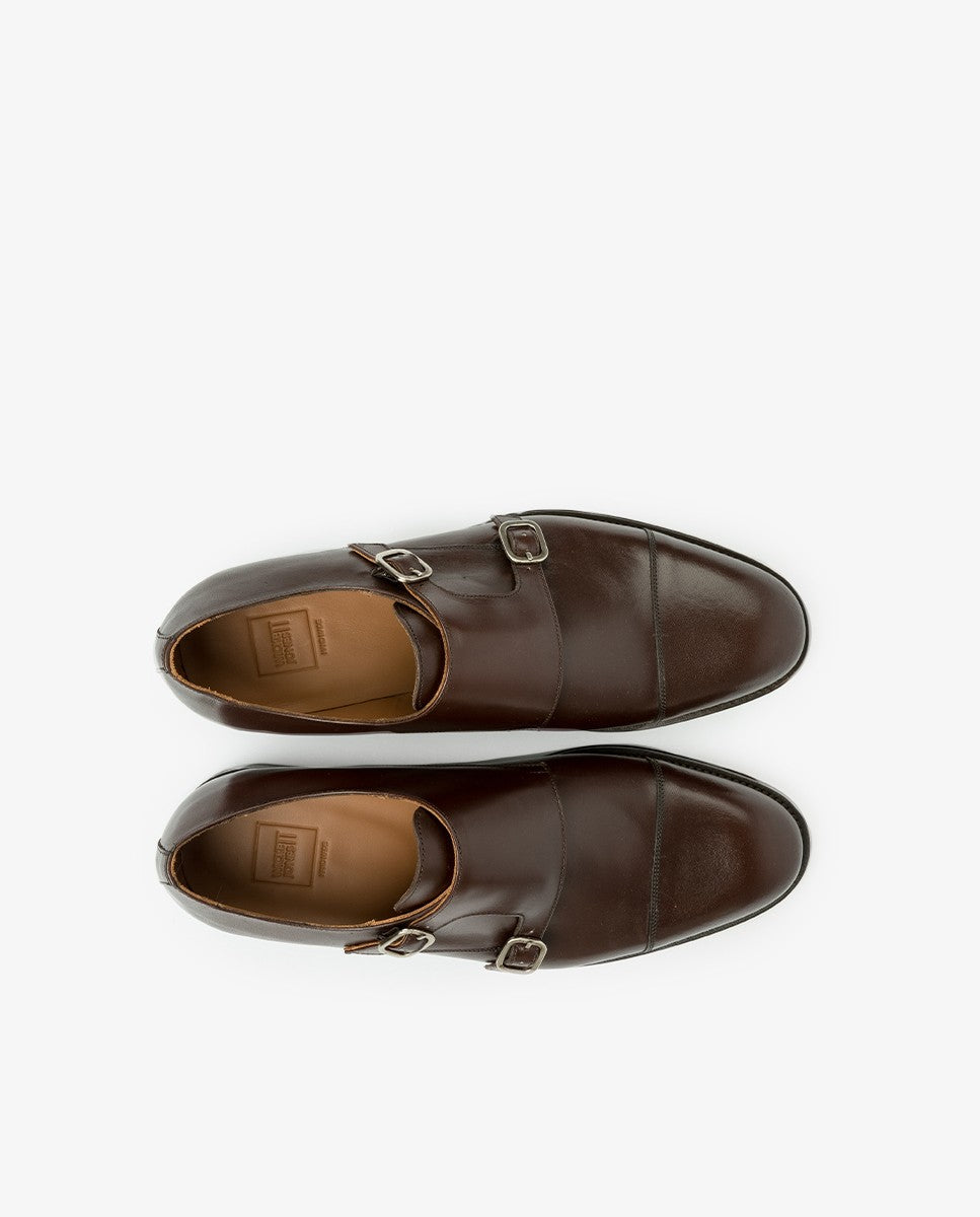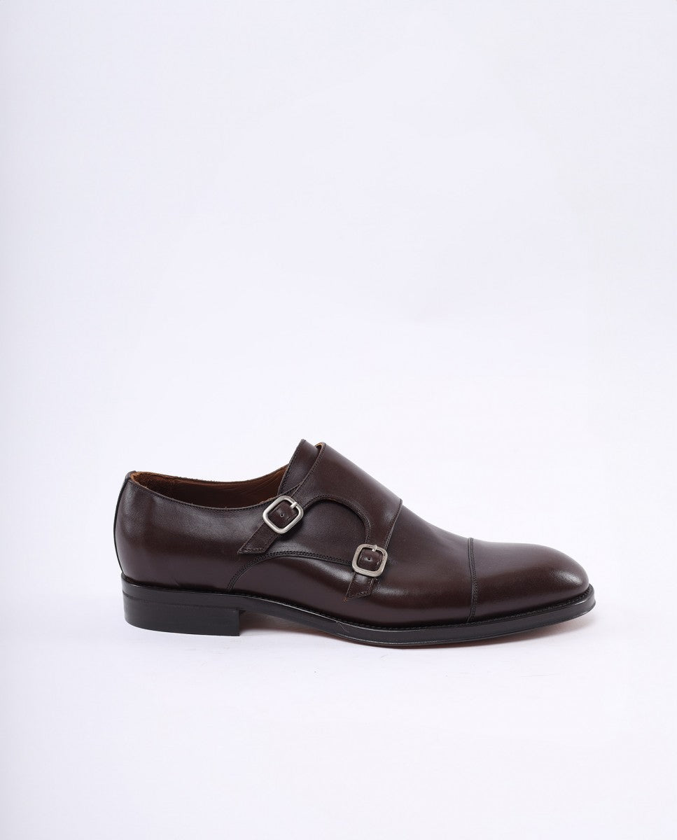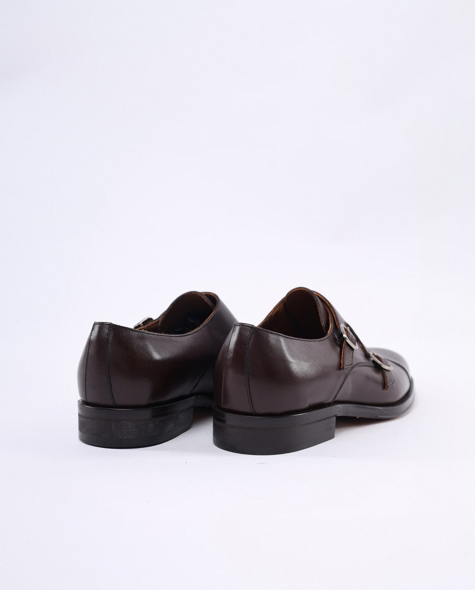 Sapatos Fivela 100% Pele em Castanho Escuro