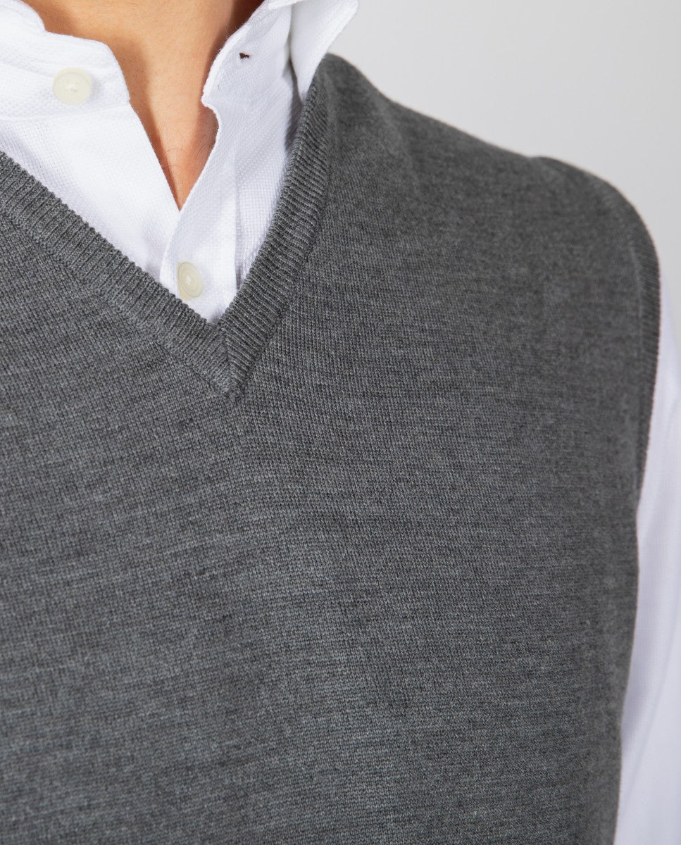 Camisola Decote em V Sem Mangas 100% Lã Merino em Cinzento Escuro