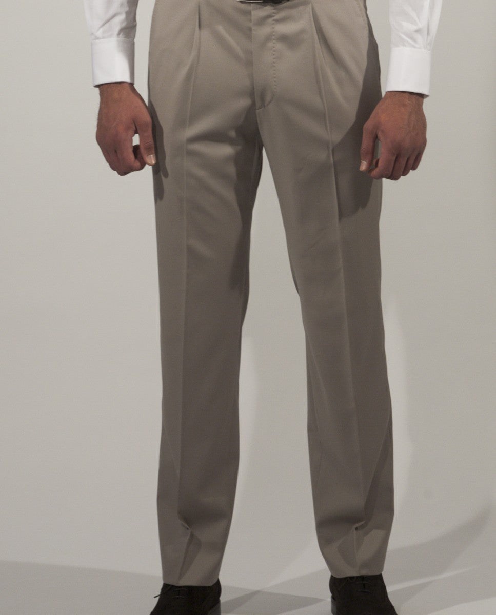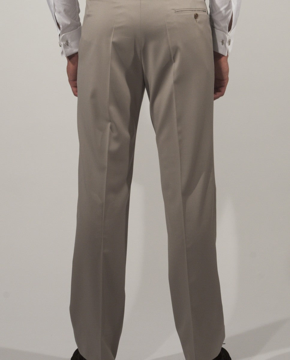 Calças Clássicas Regular 100% Lã em Bege Escuro