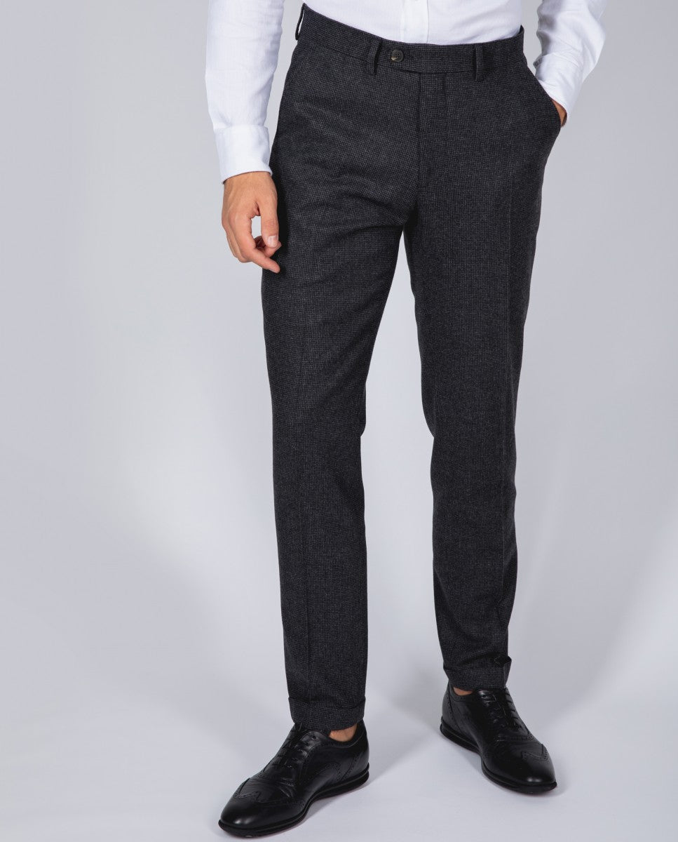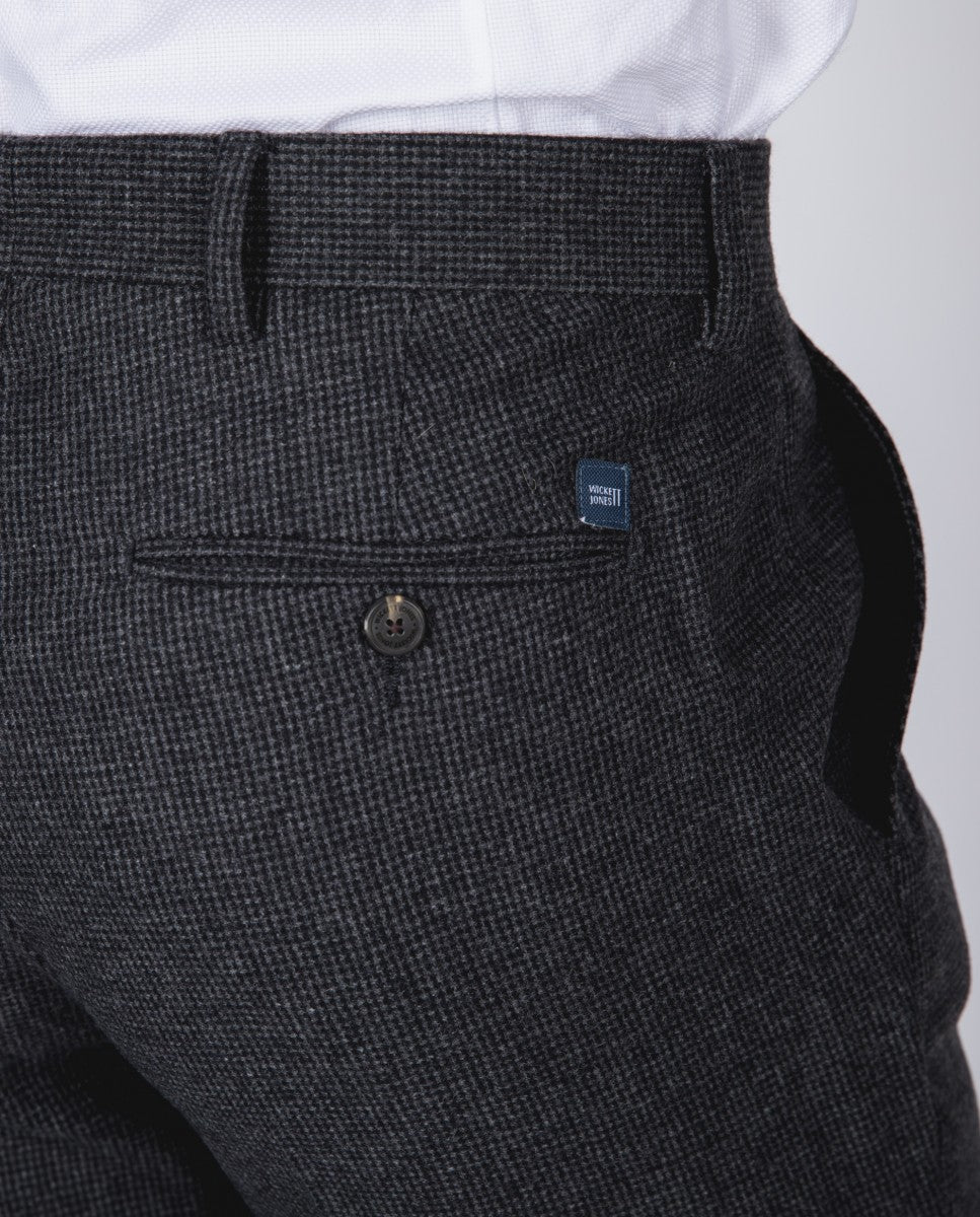 Ref. 1118002. Calças de corte clássico com bolsos laterais inclinados, um bolso traseiro e bolso para relógio. Uma peça clássica e intemporal, para quem valoriza um corte impecável.
