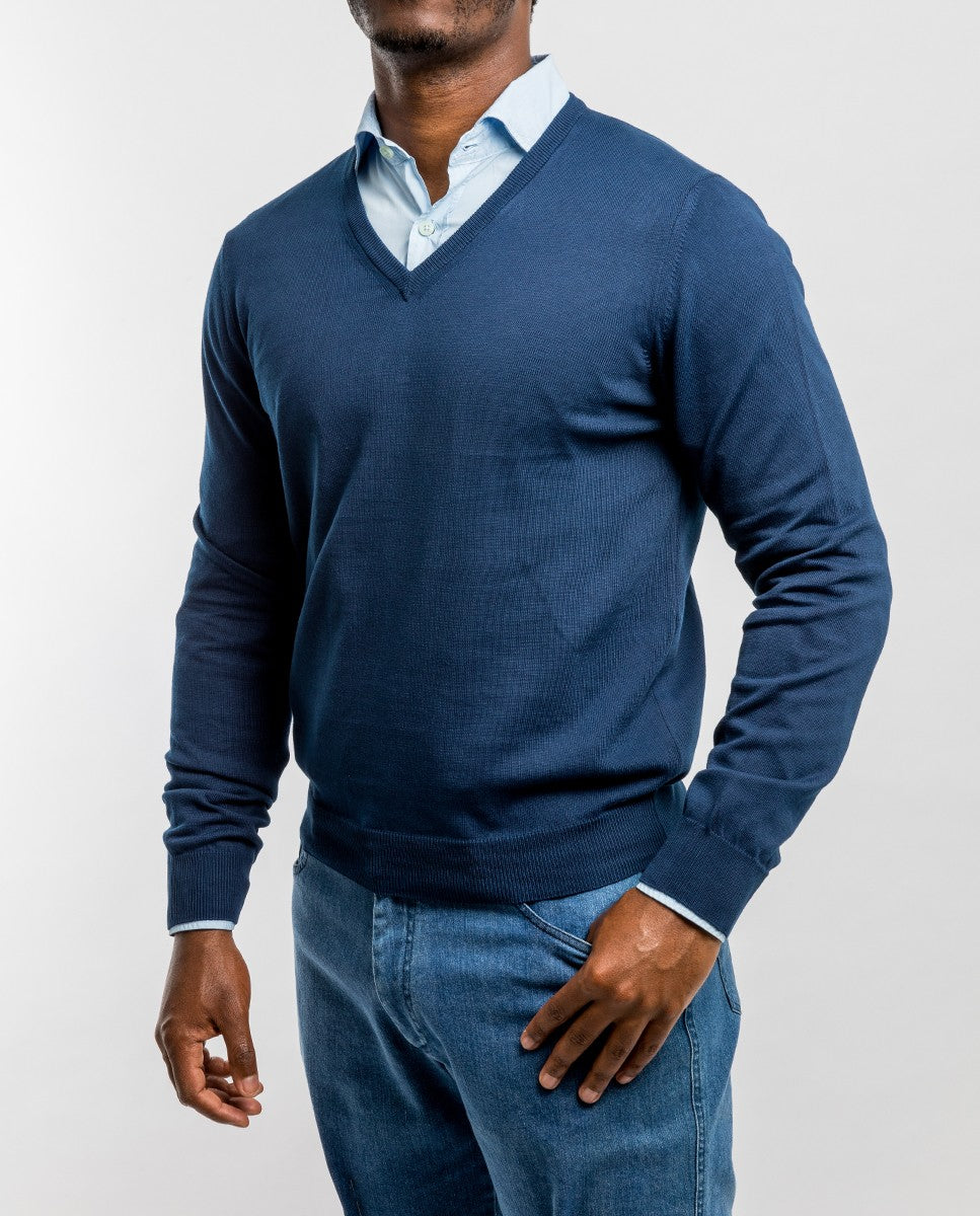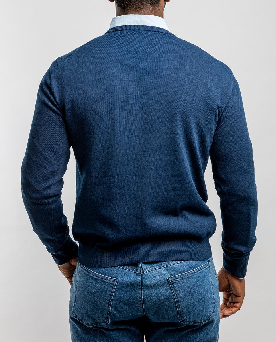 Camisola Decote em V 100% Algodão em Azul Escuro
