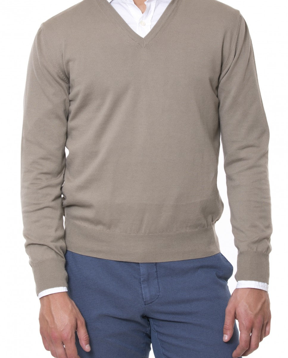 Camisola Decote em V 100% Algodão em Cor de Areia Escuro