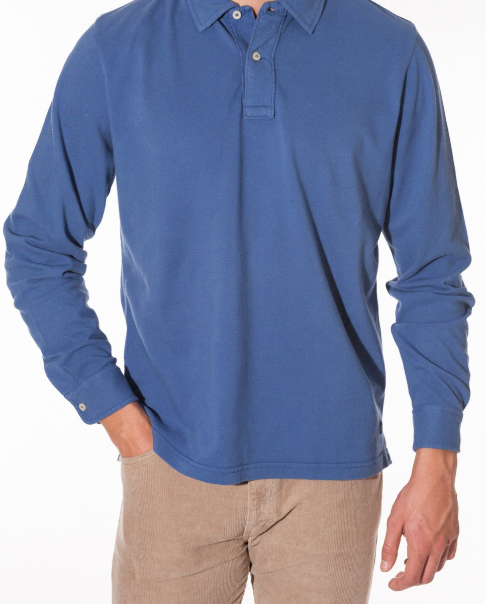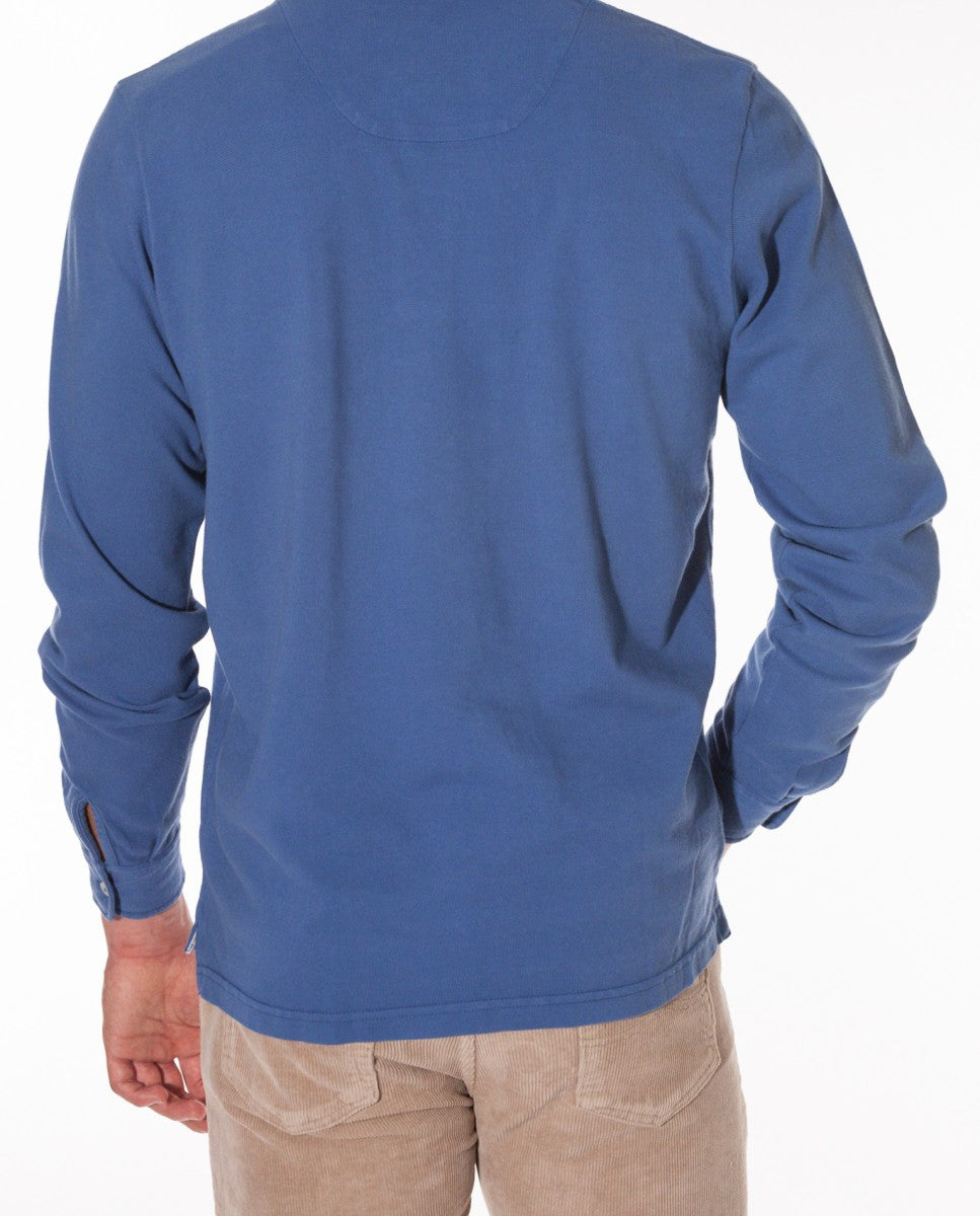 Polo Piquet Manga Comprida 100% Algodão em Azul