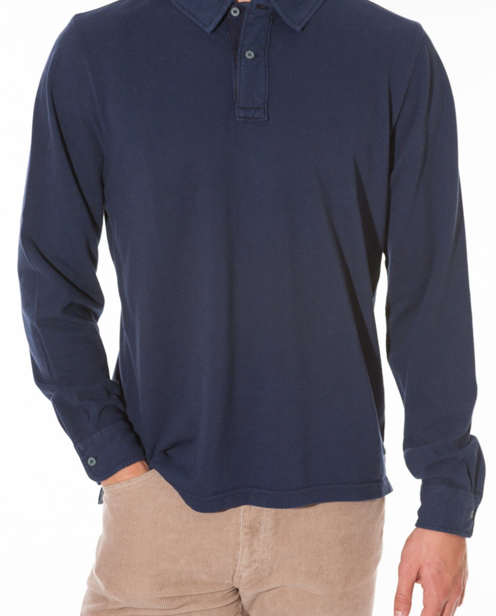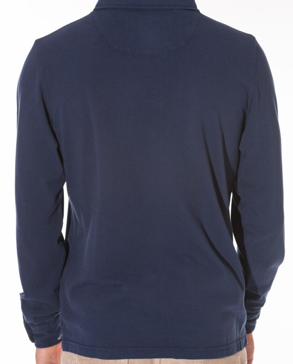 Polo Piquet Manga Comprida 100% Algodão em Azul Escuro