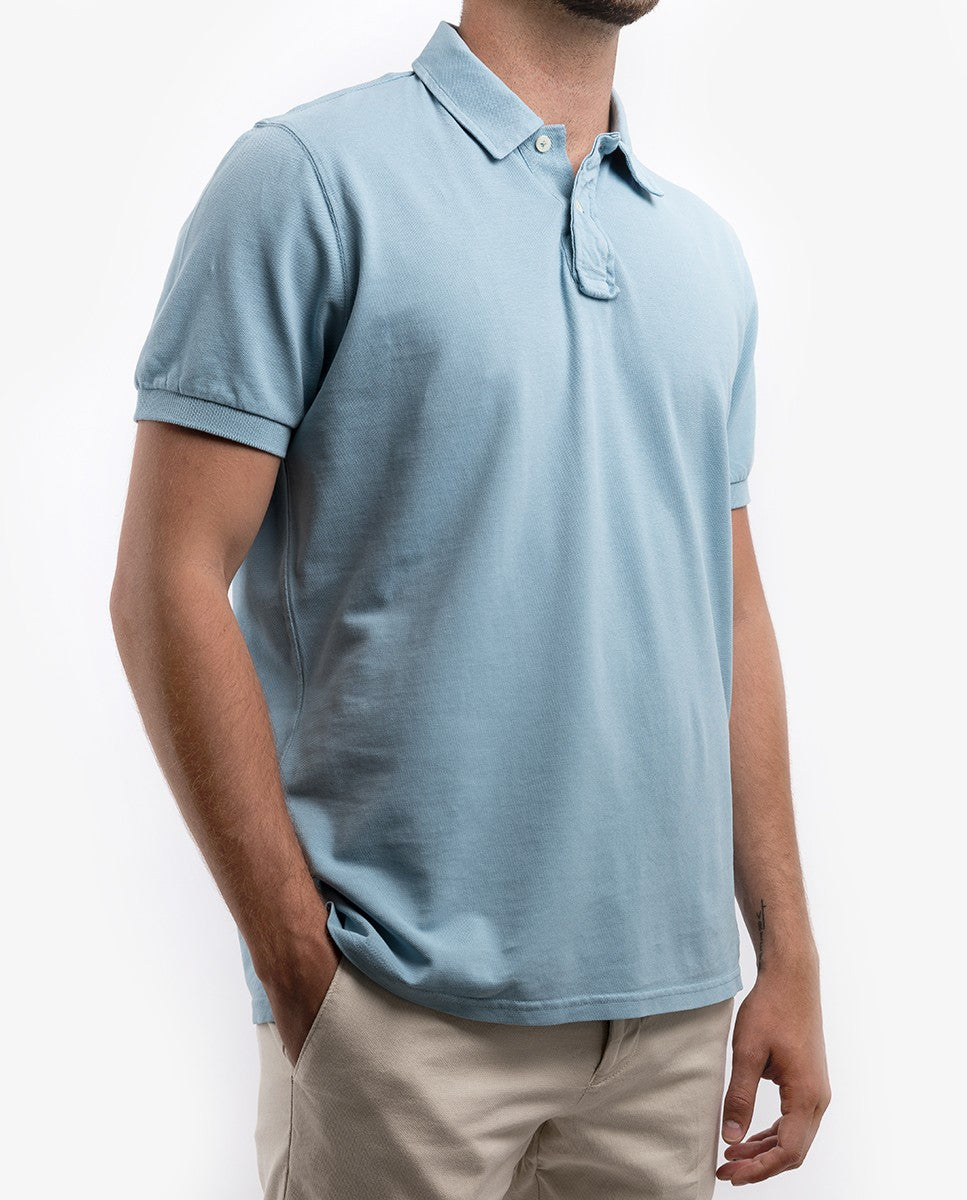Polo Piquet Manga Curta 100% Algodão em Azul Claro