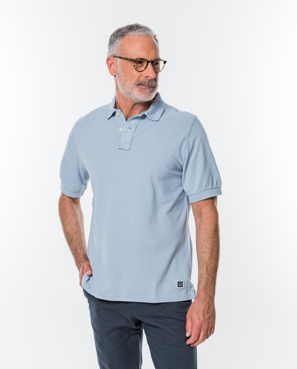 Polo Piquet Manga Curta 100% Algodão em Azul Claro