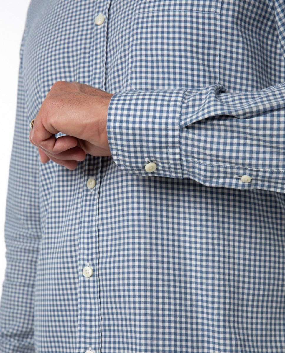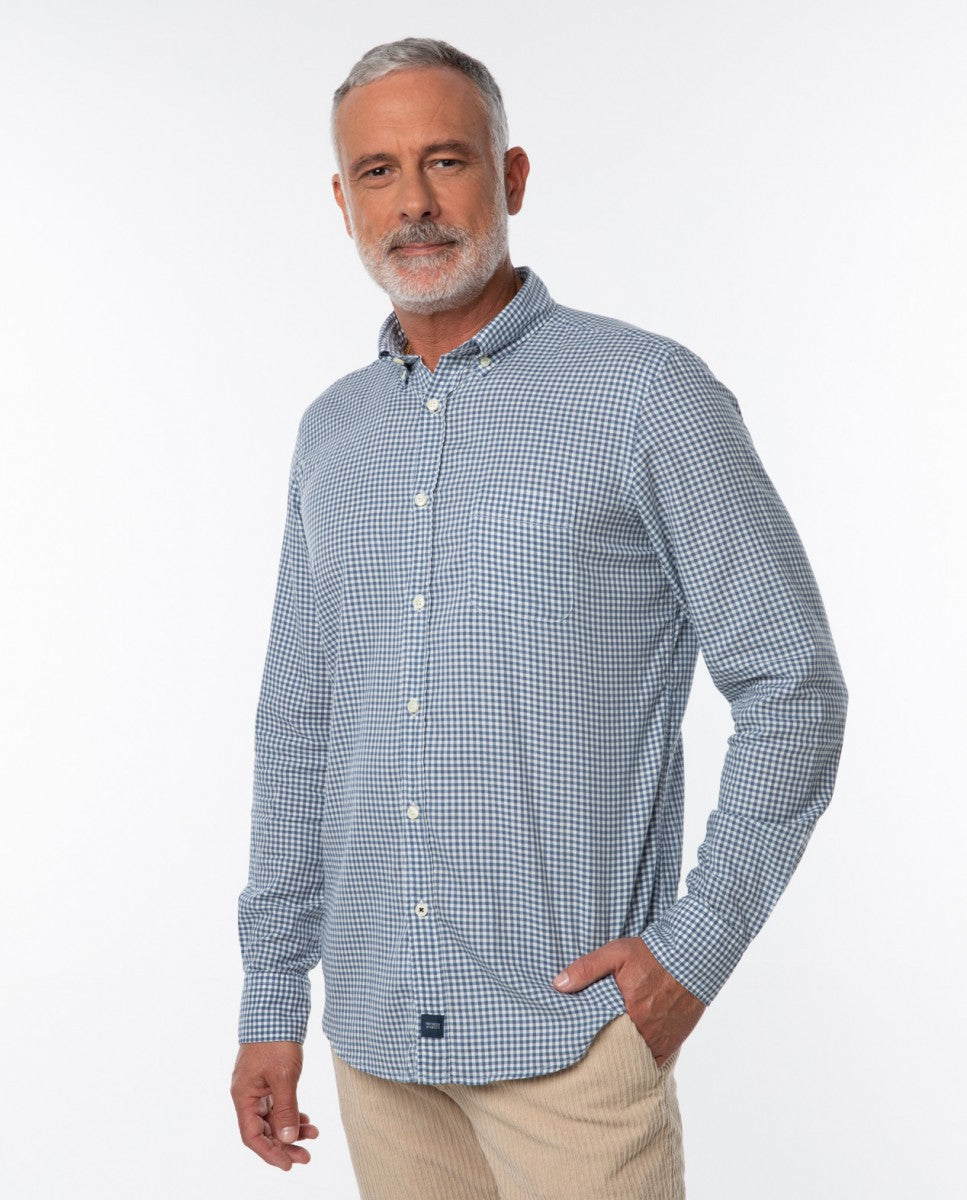 Camisa Casual 100% Algodão em Azul Escuro