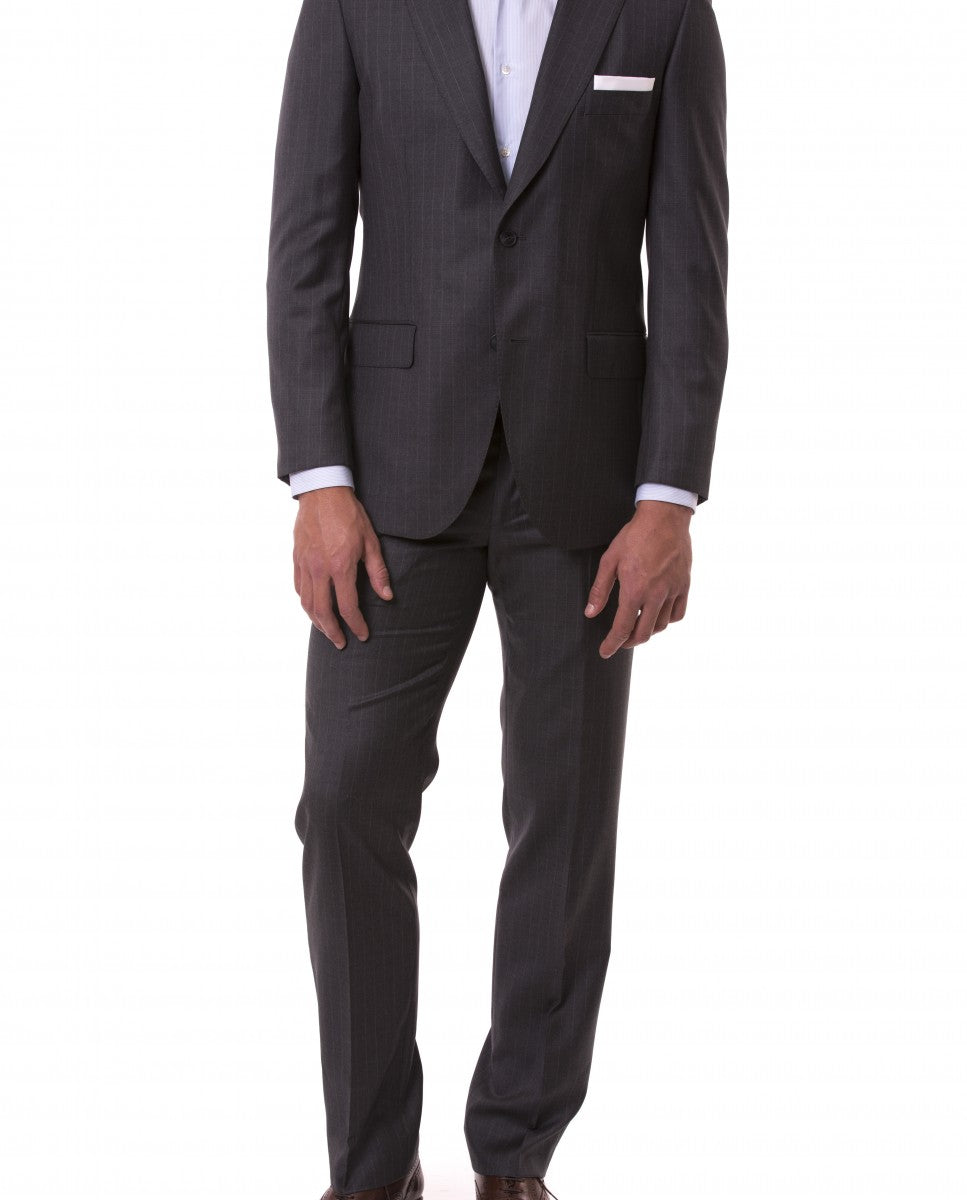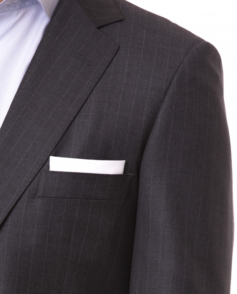 Fato Regular 100% Lã Riscas em Cinzento