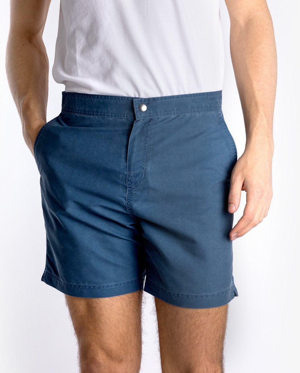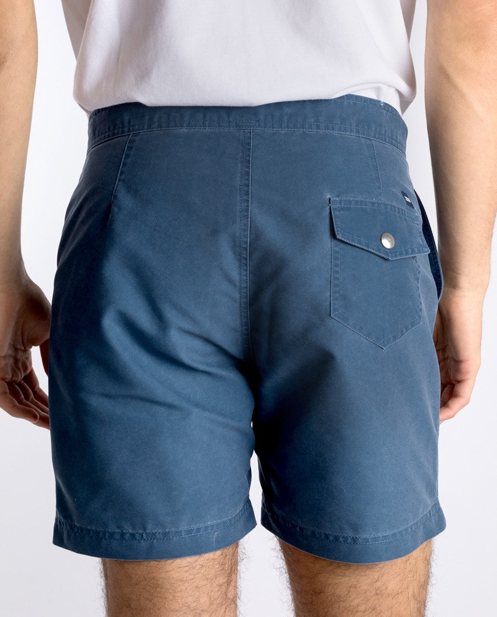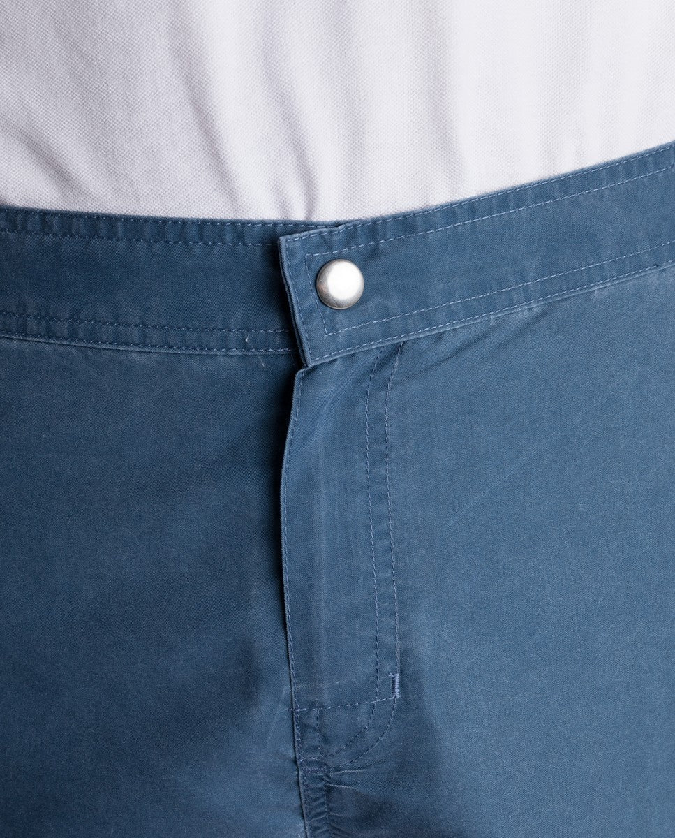 Ref. 2903008. Calções de Banho com dois bolsos à frente e um bolso traseiro com pala. Cós com elástico lateral e botão de pressão. Slip interior em malha para conforto e segurança.Conforto e estilo numa peça ideal para dias de praia. Composição - Poliéster Padrão - Liso Cor - Azul