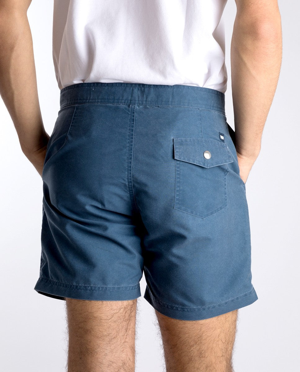 . Calções de Banho com dois bolsos à frente e um bolso traseiro com pala. Cós com elástico lateral e botão de pressão. Slip interior em malha para conforto e segurança.