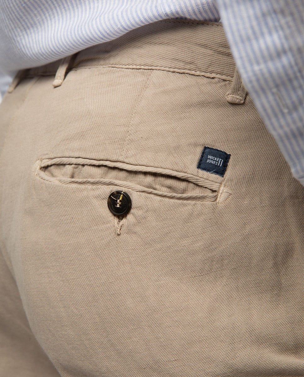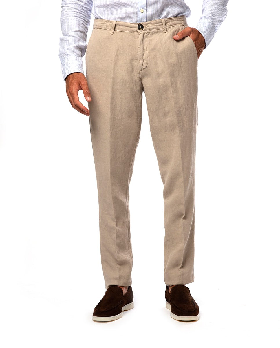Ref. 1003099. Calças com bolsos inclinados, fecho de correr e um botão. A opção casual de um cavalheiro que valoriza estilo e conforto.