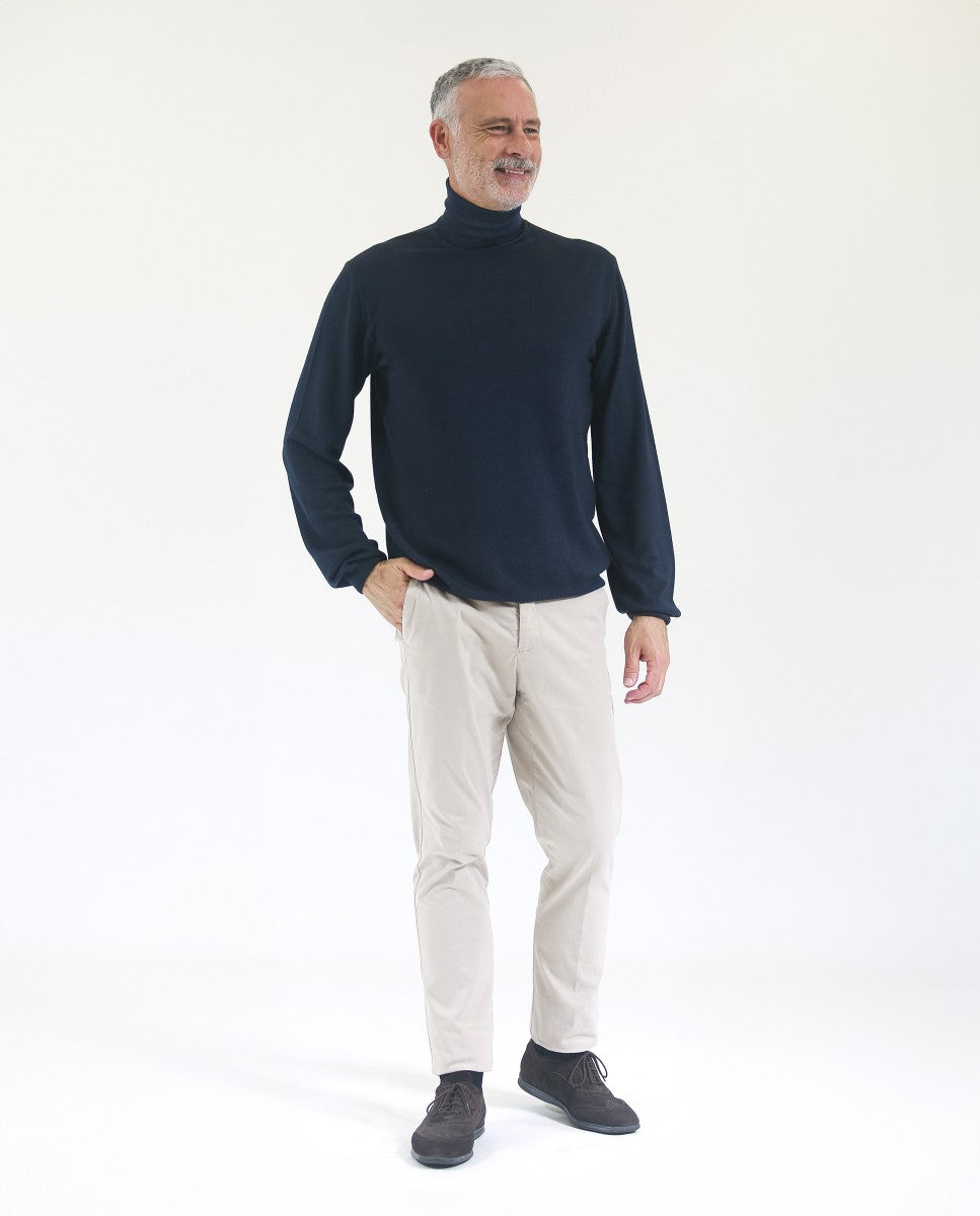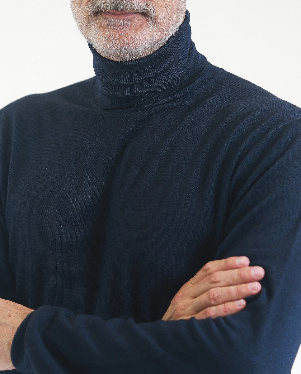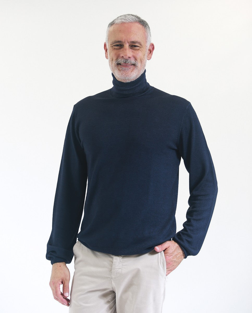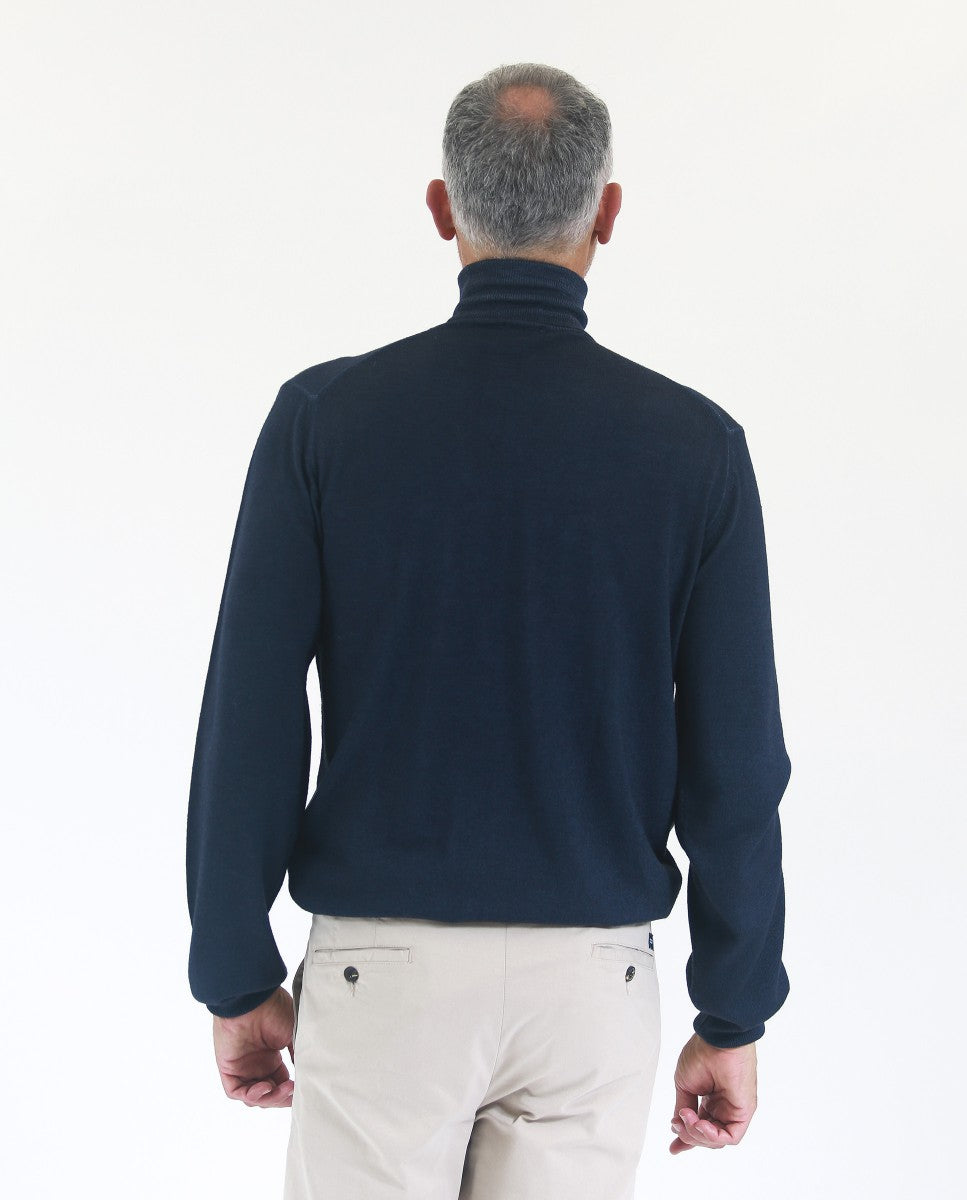 Camisola Gola Alta 100% Lã Merino em Azul Escuro