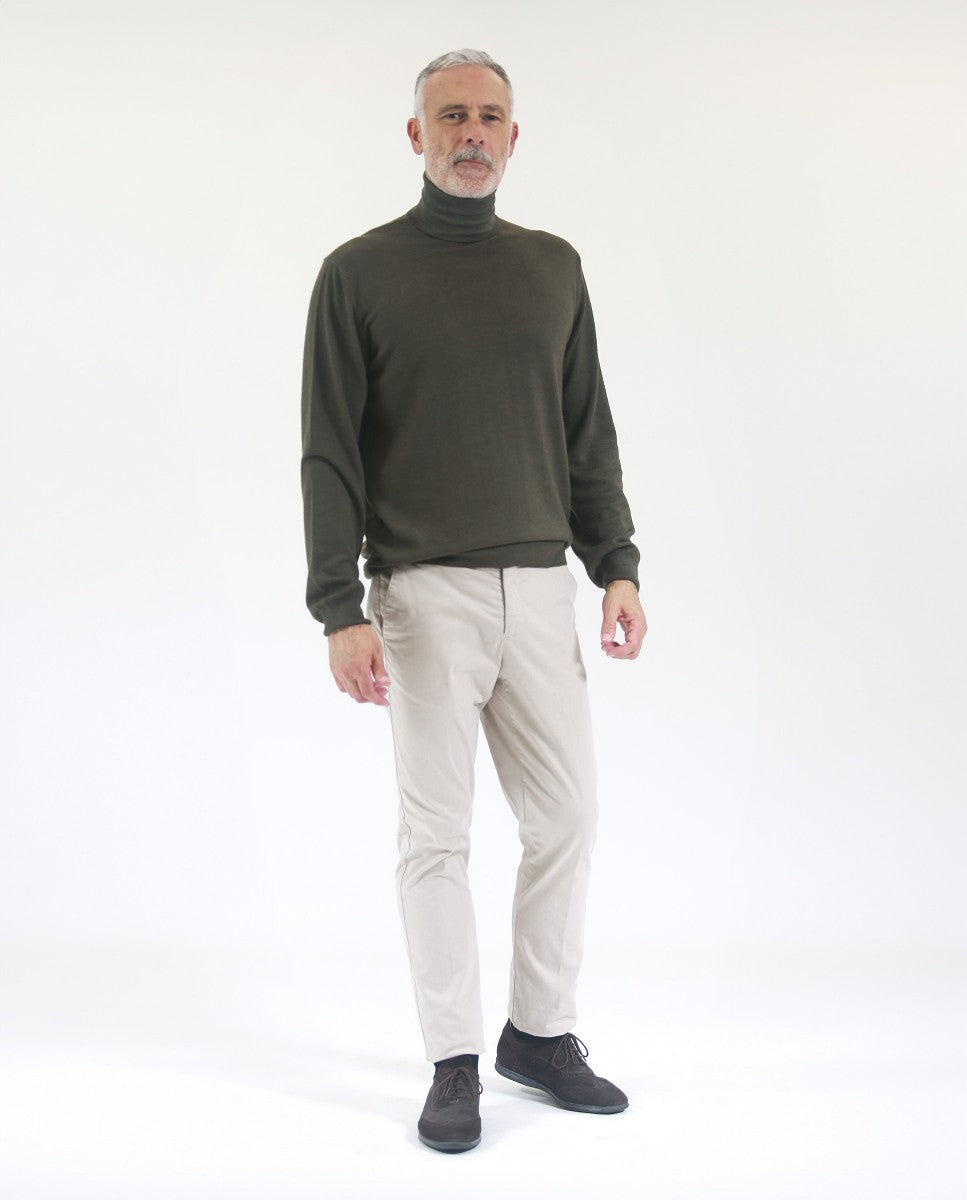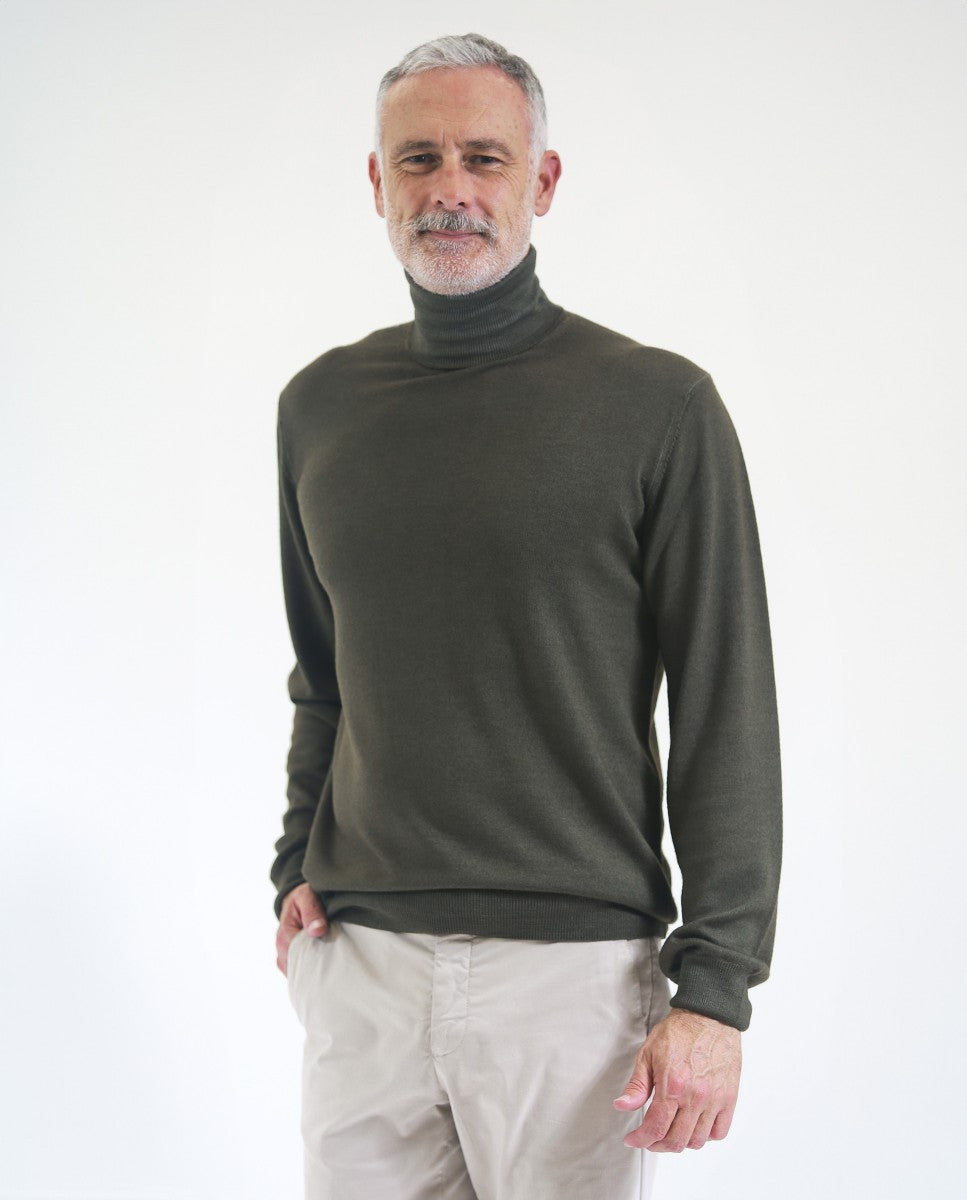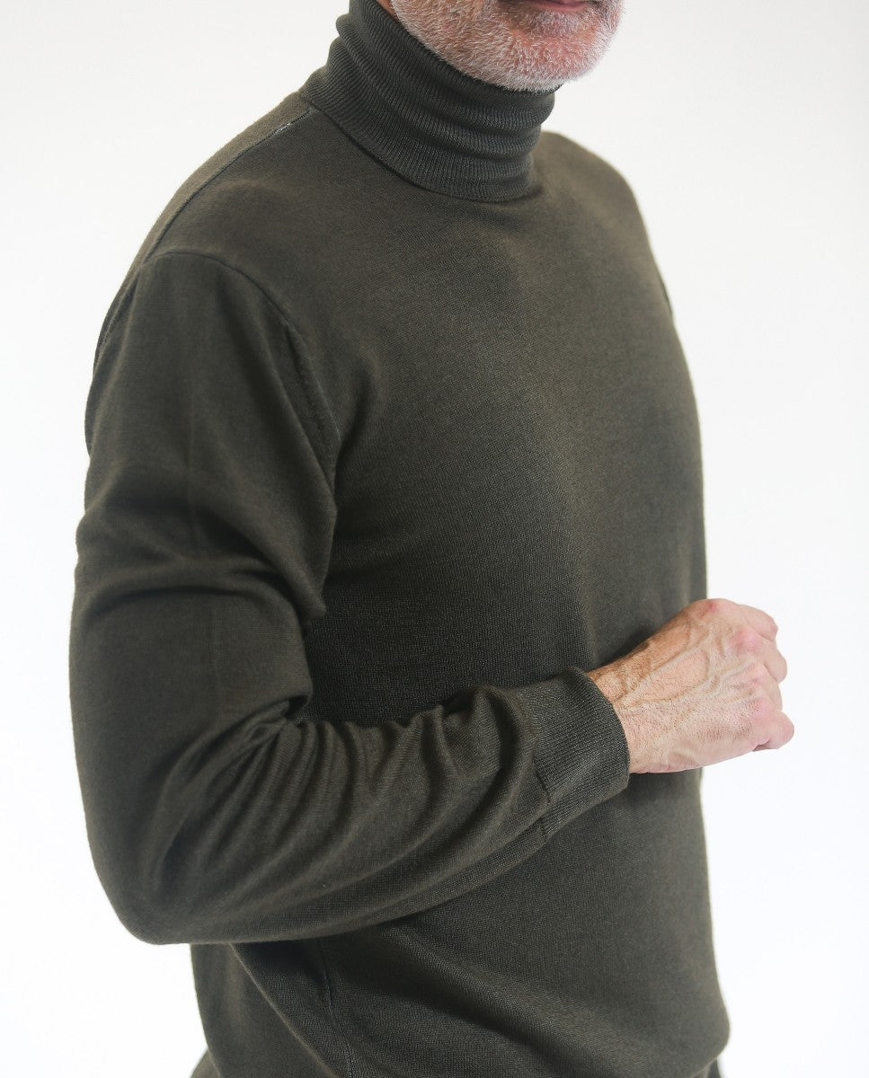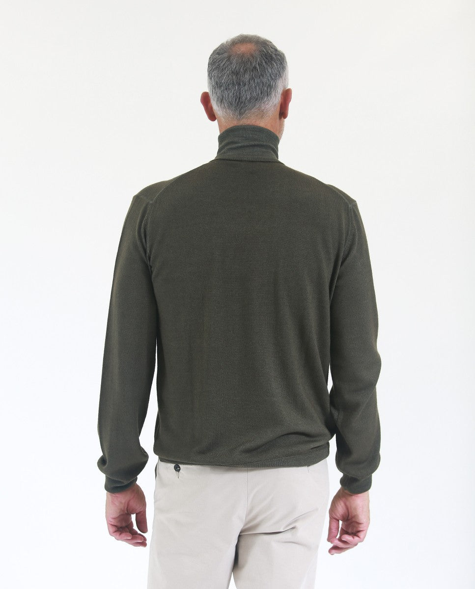 Camisola Gola Alta 100% Lã Merino em Verde Escuro