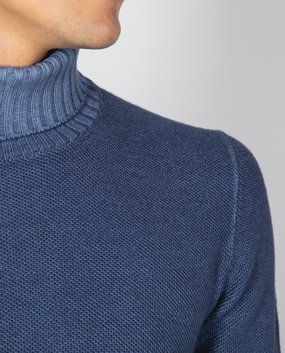 Camisola Gola Alta 100% Lã Virgem em Azul