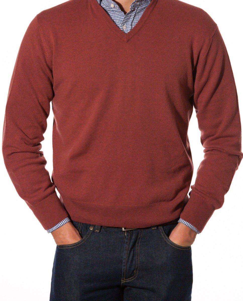 Camisola Decote em V 100% Caxemira em Cor-de-rosa Escuro