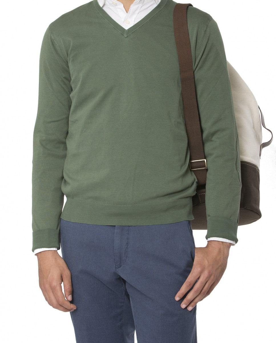 Green V Neck Sweater 100% Cotton