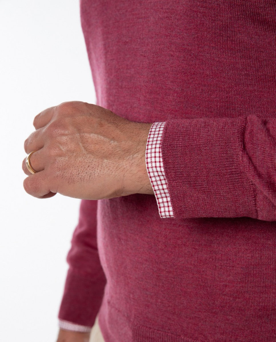 Camisola Decote em V 100% Lã Merino em Cor-de-rosa Escuro