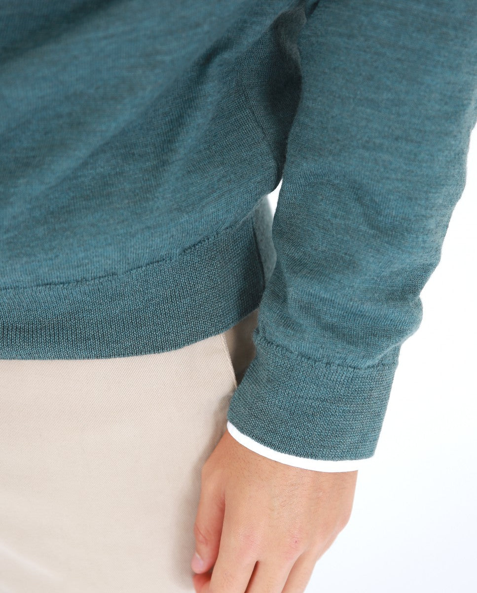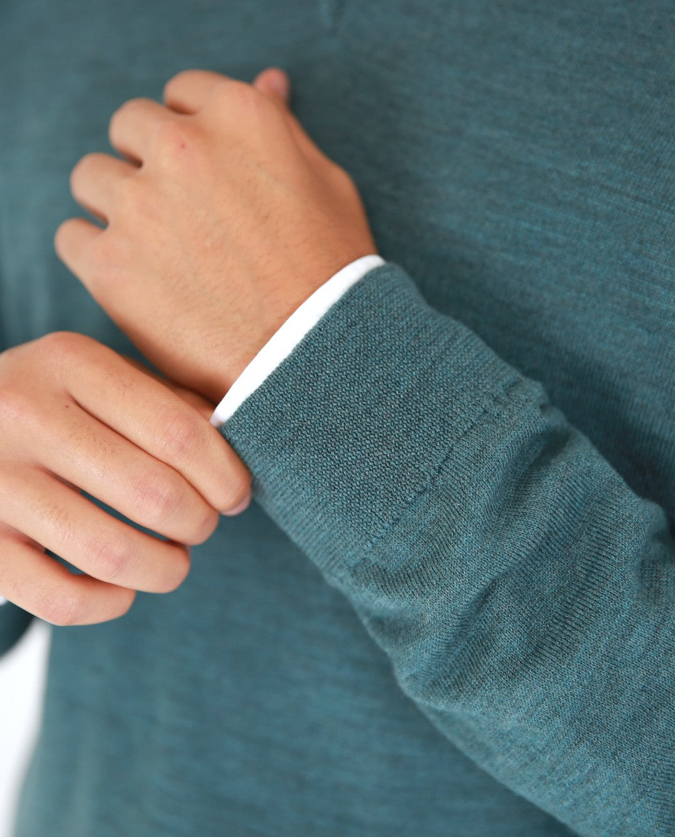 Camisola Decote em V 100% Lã Merino em Verde Petróleo