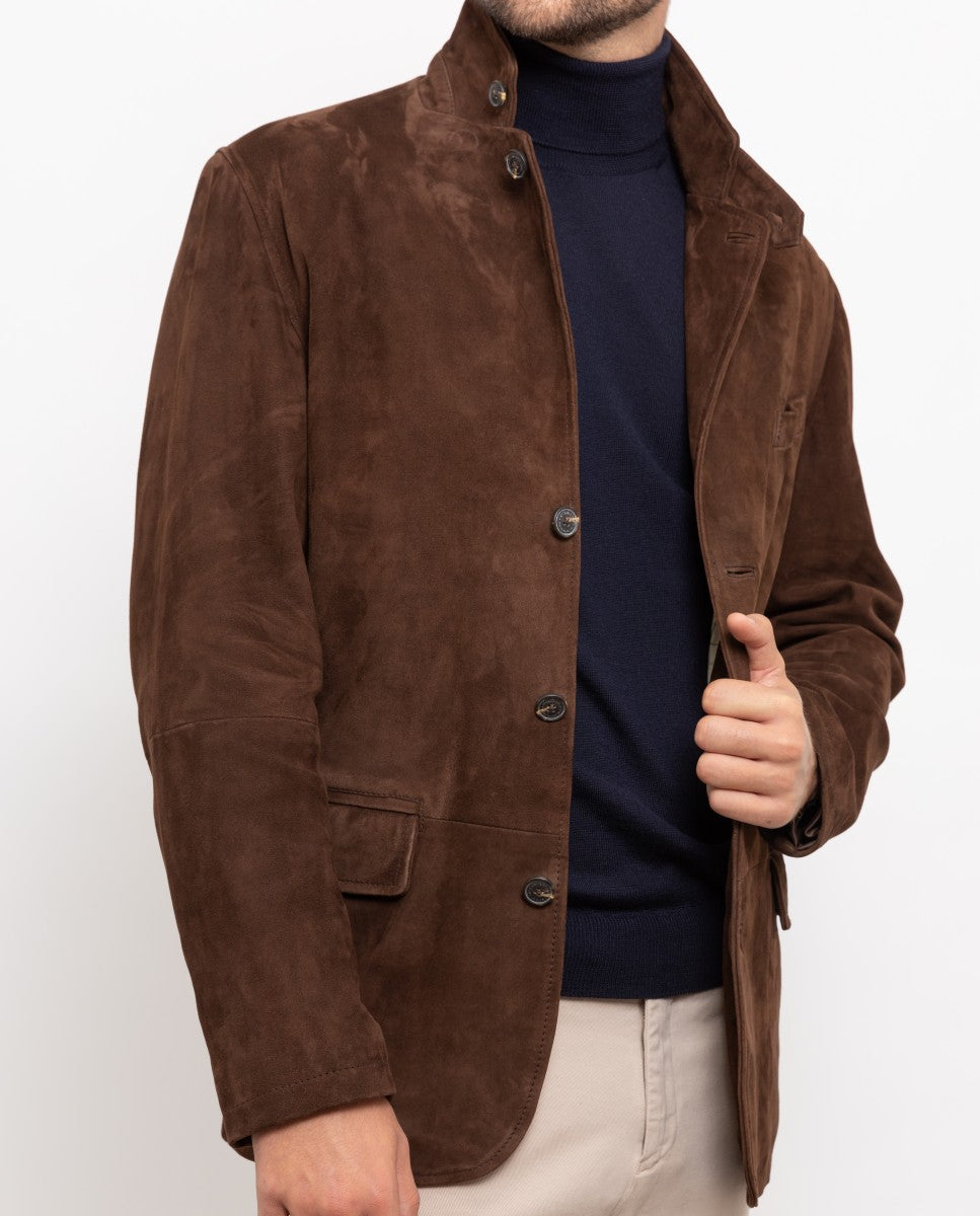 Blusão 100% Pele em Castanho Escuro