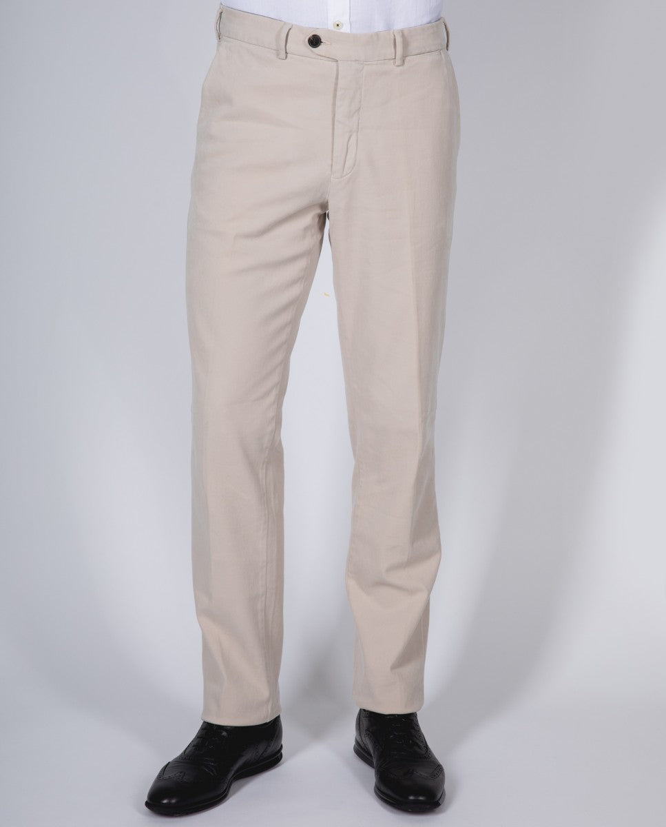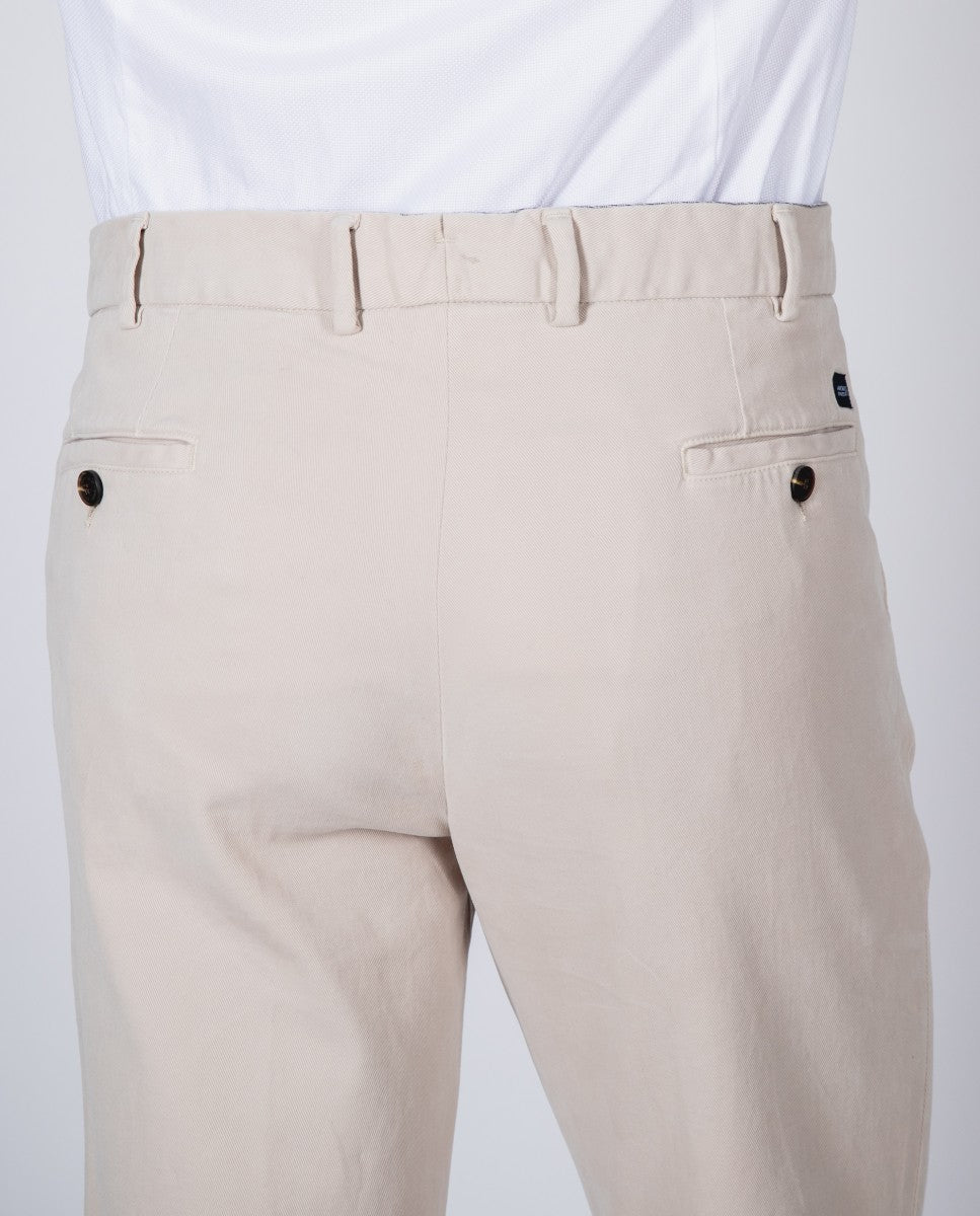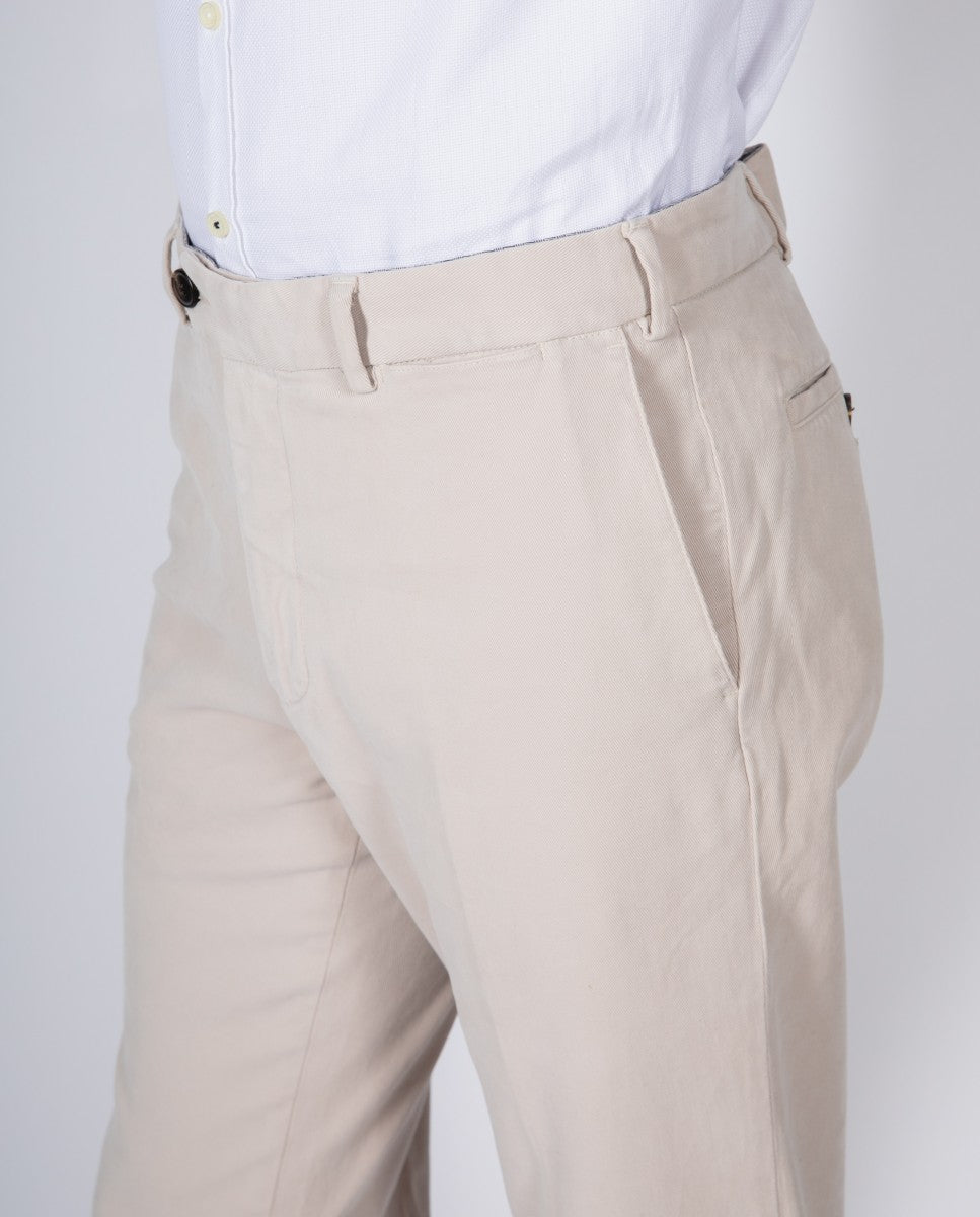Ref. 1013001. Calças com bolsos inclinados, fecho de correr e um botão. A opção casual de um cavalheiro que valoriza estilo e conforto. Fit - Regular Composição - Algodão, Elastano Padrão - Liso Cor - Bege Claro